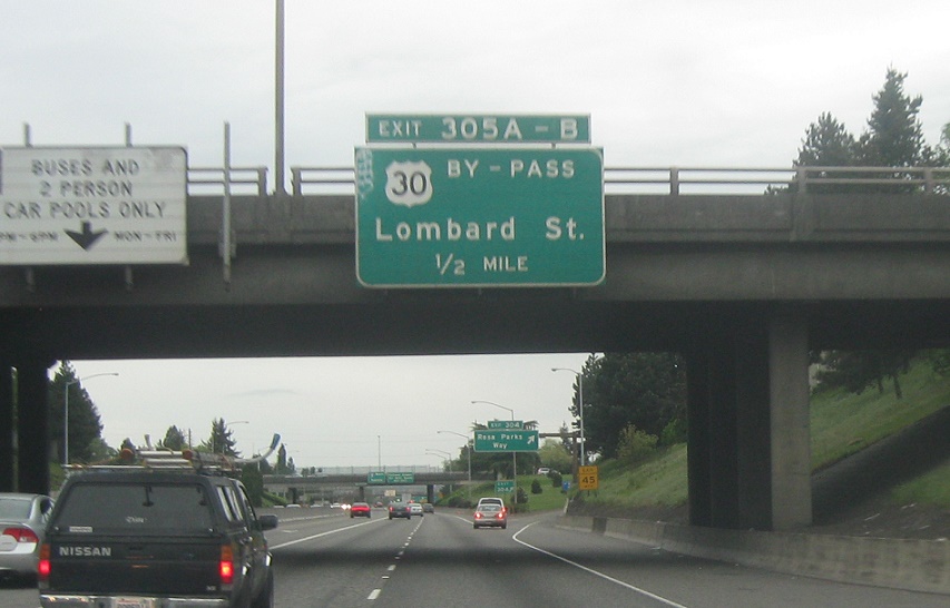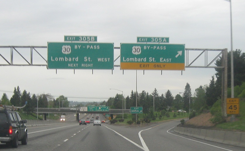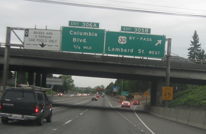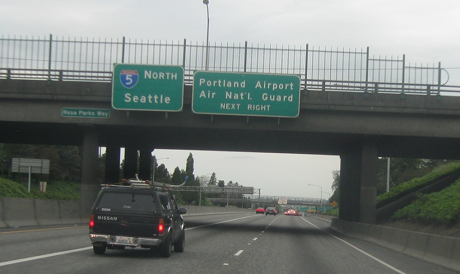 Old school WSDOT style white cutout after the Killingsworth interchange.