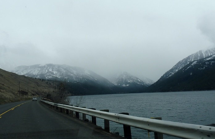 Route 351 hugs the east shore of Wallowa Lake as we head out of Joseph.