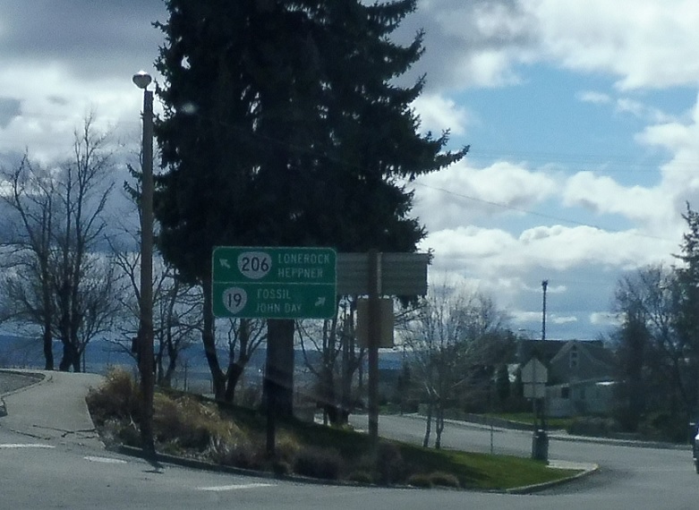 A couple blocks later, 206 east splits to head to Lonerock and Heppner. Stay on 19 for Fossil and John Day.