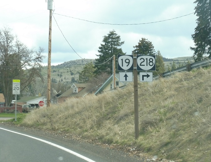 Turn right for OR 218 east. This is an odd intersection where OR 19 is heading east-west as a north-south highway, and OR 218 heads due south as an east-west highway.