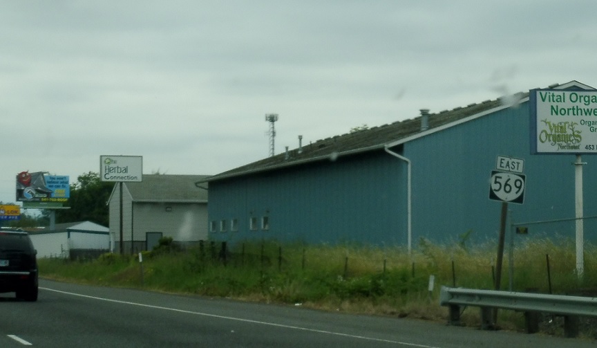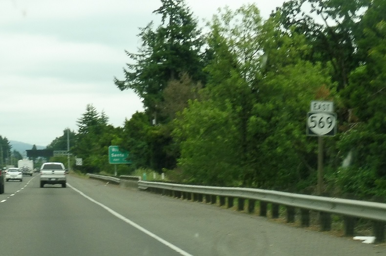 Exit for I-5 north. Oregon 569 continues to the light in the distance.