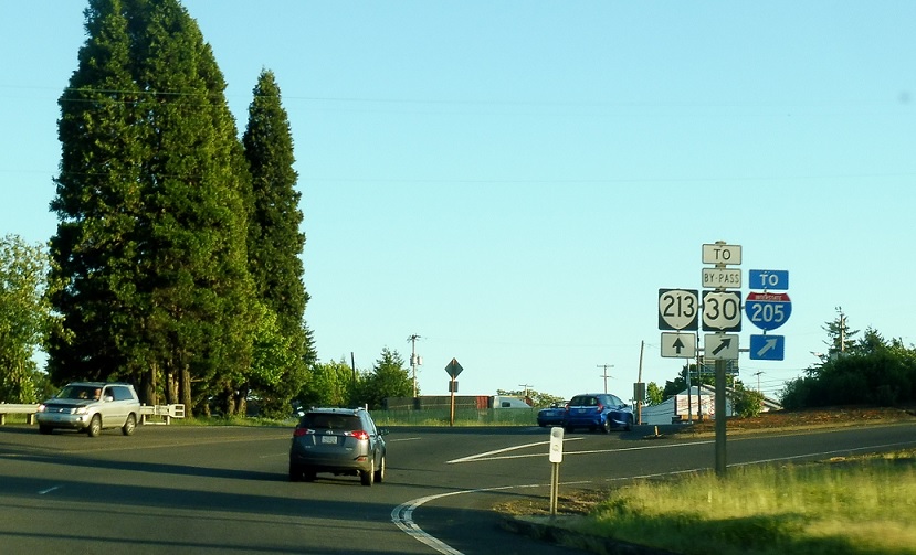 A quarter mile later, we’ll approach 30 Bypass. Exit for 30 Bypass to I-205. Stay straight to stay on 213 south.