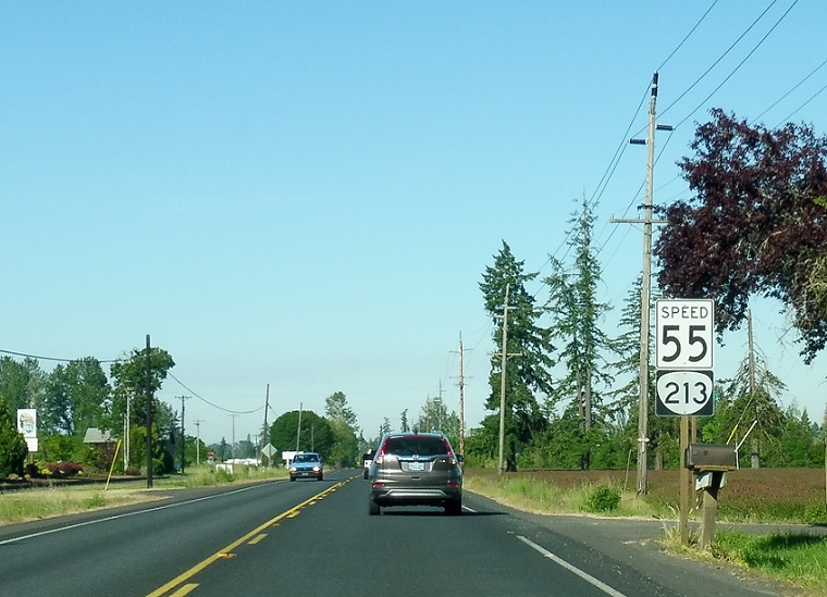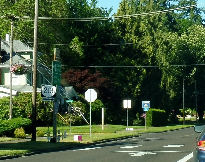 A block after Oregon 213 splits from 214 (now locally maintained), turn right to stay on 213.