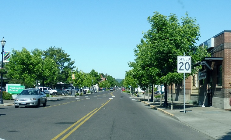 A couple blocks later, OR 194 turns left to head out of town.