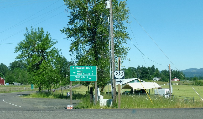 A few miles later, we’ll approach Oregon 223. Turn right for 223 north and left for 223 south. OR 194 ends.