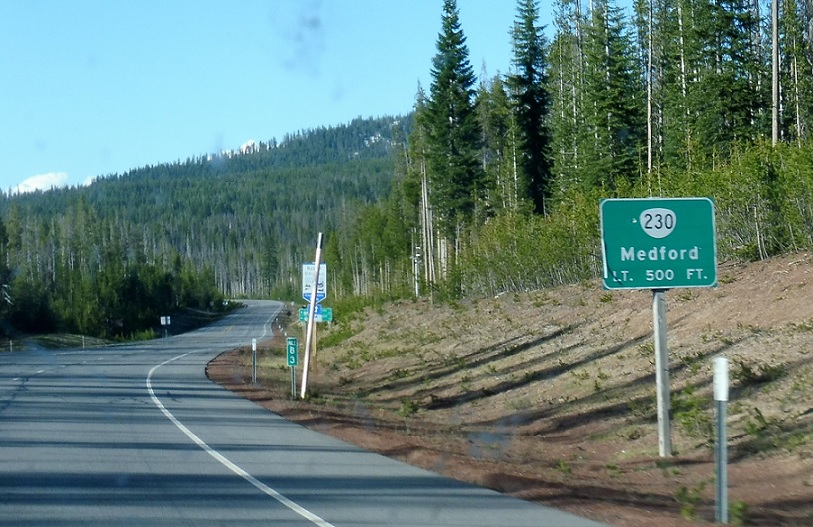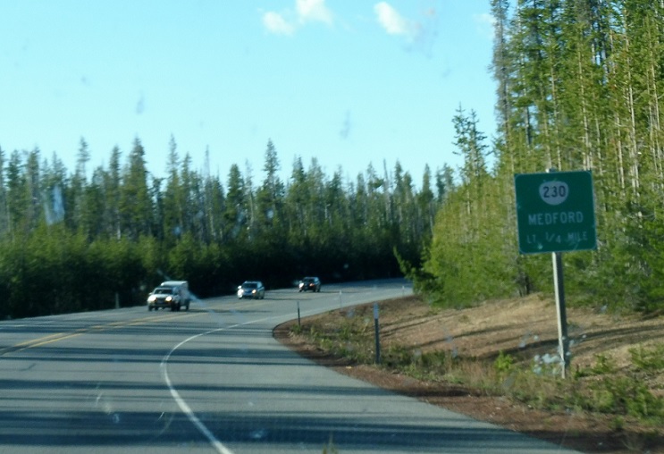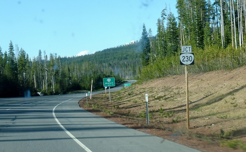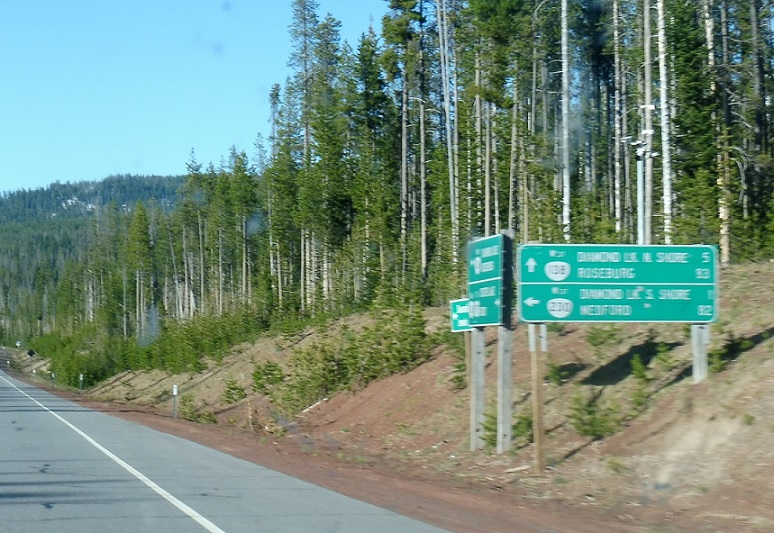 Thirteen miles later, as we approach the northern Crater Lake turnoff, turn left to head to Crater Lake. OR 230 is coming up soon and heads around the west side of the national park.