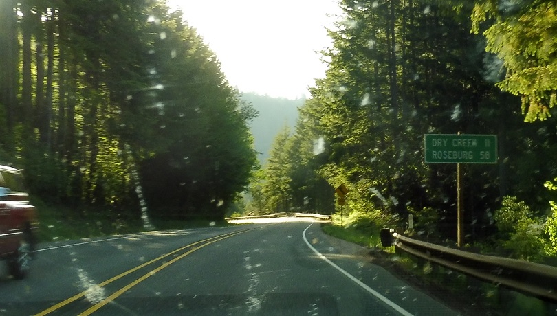 Sixteen miles later, we’ll enter Roseburg and approach Oregon 99.
