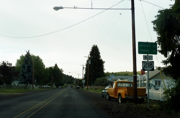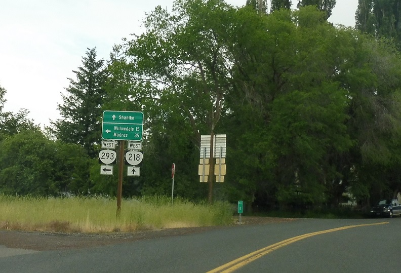 Turn left for OR 293, the fastest route to US 97 from here. Stay on 218 for Shaniko.
