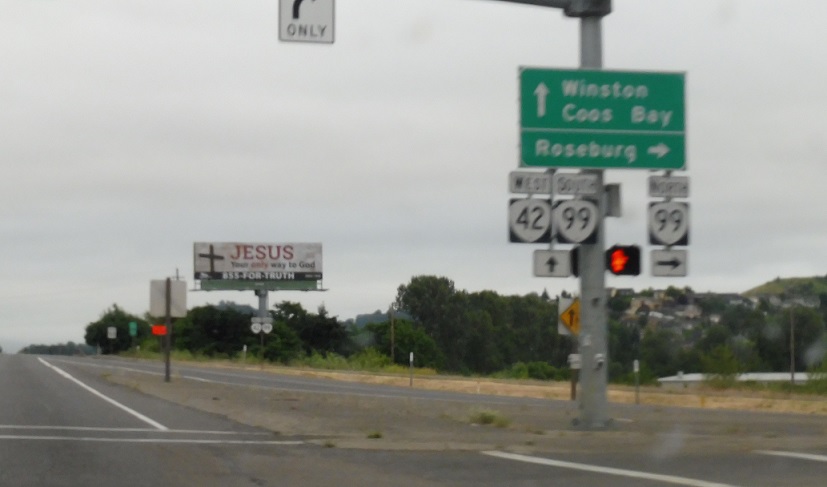 Turn right for 99 north into Roseburg. 99 south and 42 west run concurrent to Winston.