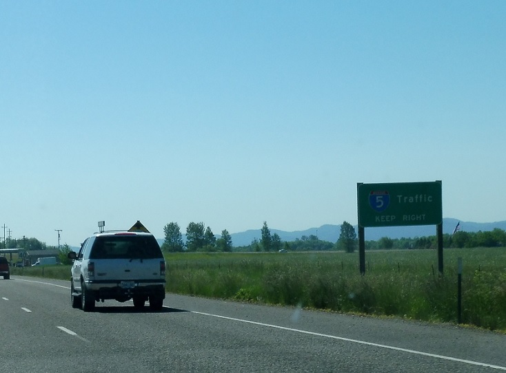 As we approach I-5, traffic is directed to keep right, since both north and southbound traffic will turn right to access I-5.