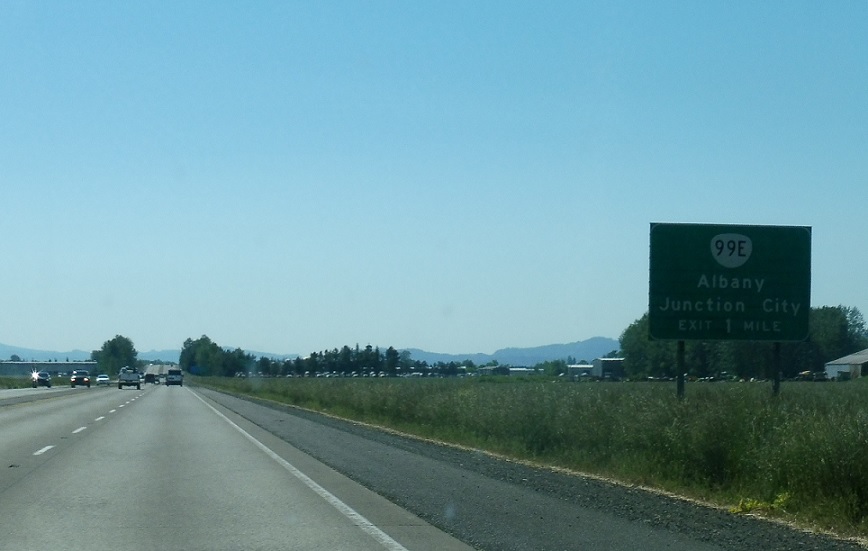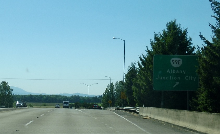 Exit for OR 99E, which heads south to Junction City and north to Albany.
