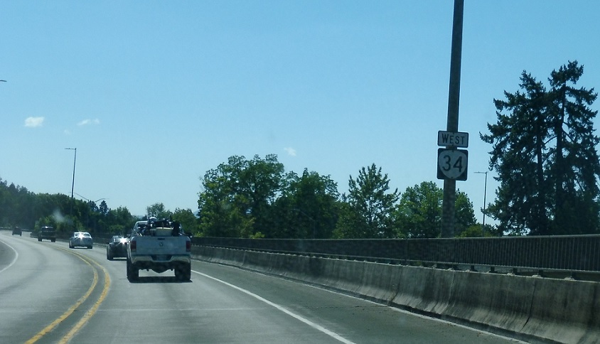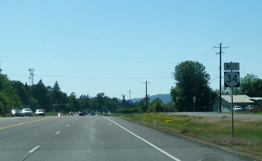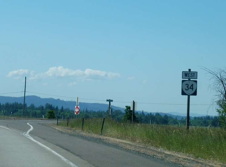 As we near Corvallis, OR 34 turns to follow a southerly bypass around town, connecting it to US 20 and OR 99W.