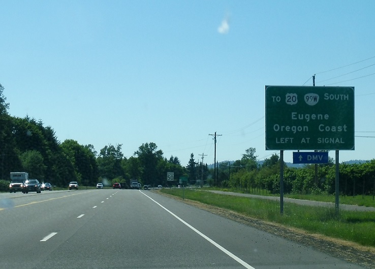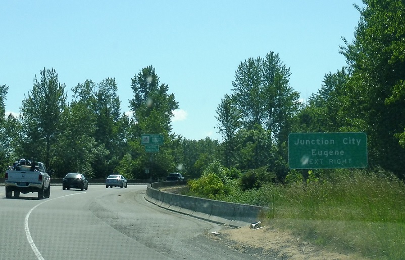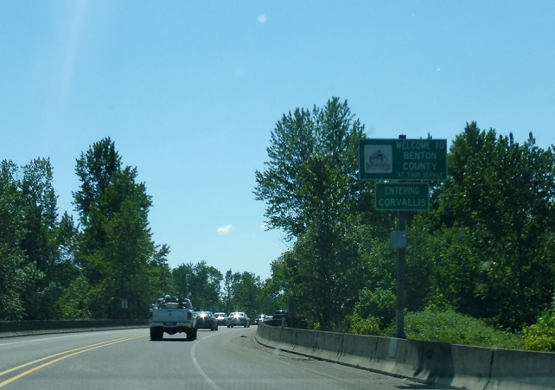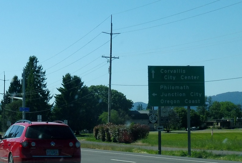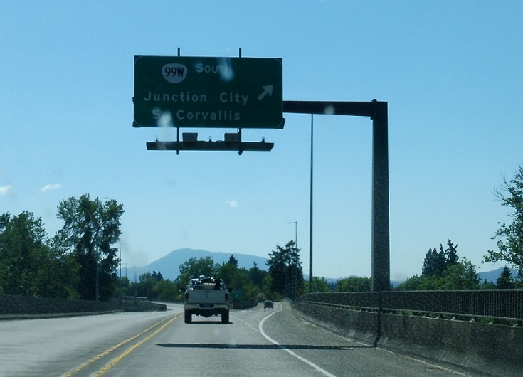 As we enter Corvallis, the exit for OR 99W south to Junction City and Eugene approaches.