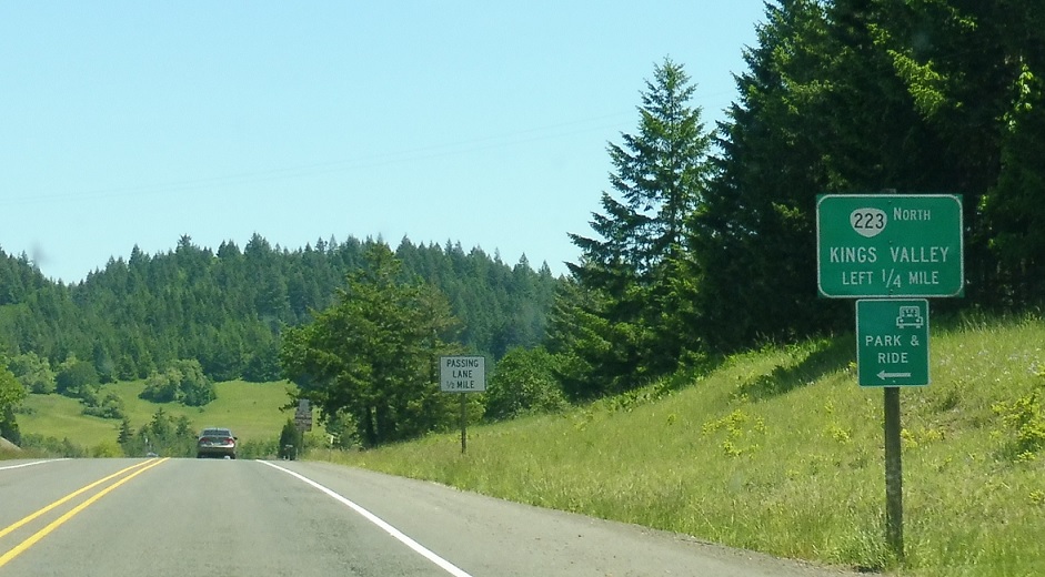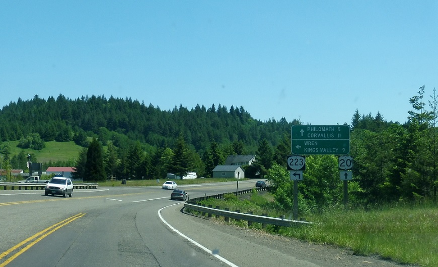Turn left for 223 north to Kings Valley. Stay on US-20 for Philomath and Corvallis.