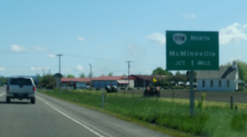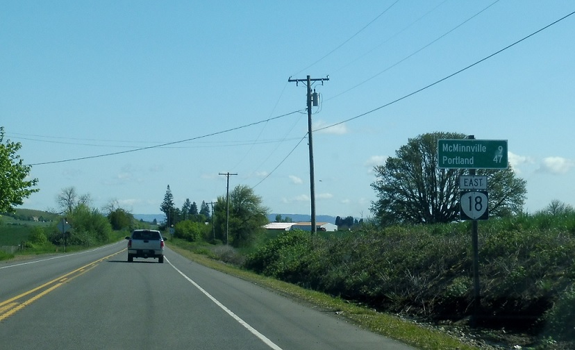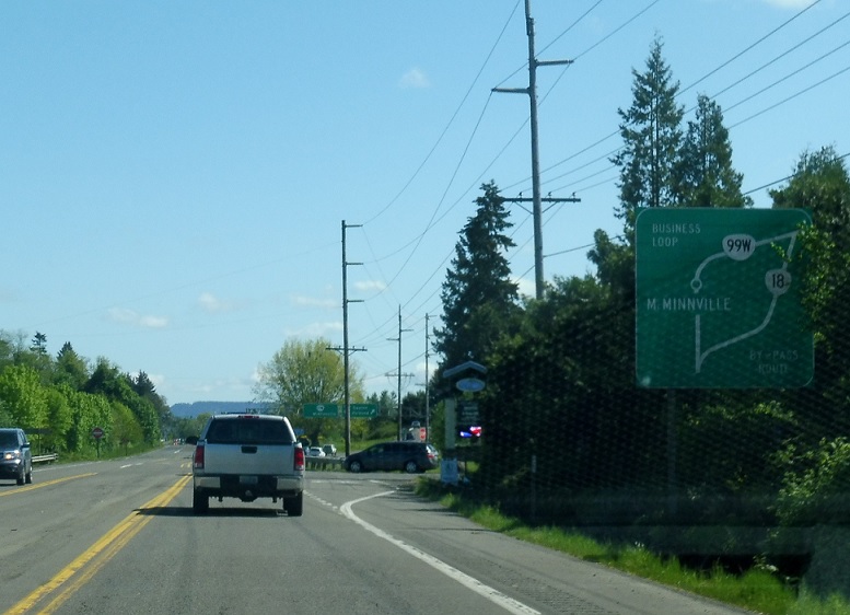 Oregon 18 and 99W serve complementary roles around McMinnville, with 99W functioning as a type of business loop and 18 serving as a bypass.