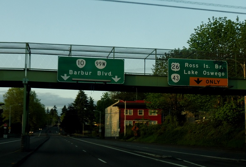 Oregon 10 begins here, as US-26 exits, connecting to OR 43. This was once the northern terminus of OR 99W, but is not any longer.