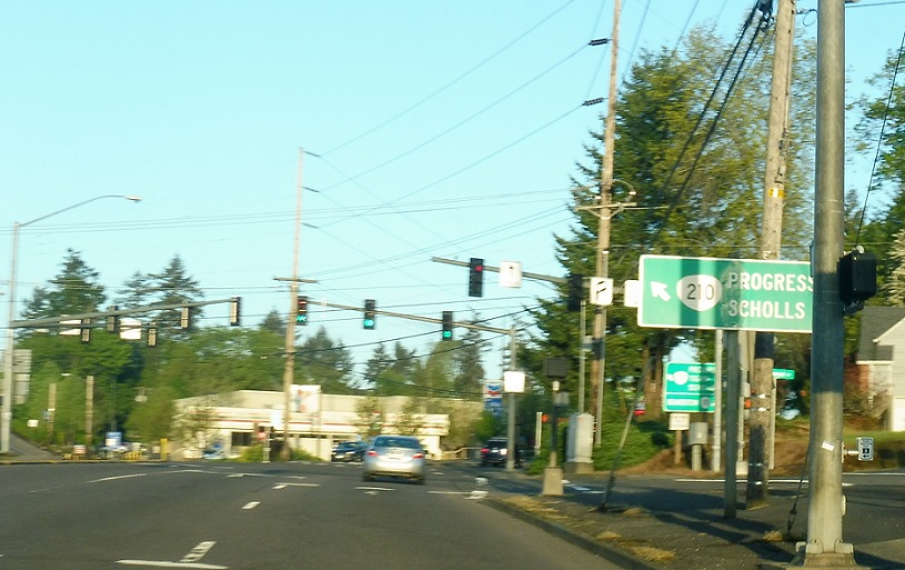 Keep left for 210 west towards Progress and Scholls. Stay straight to stay on OR 10.