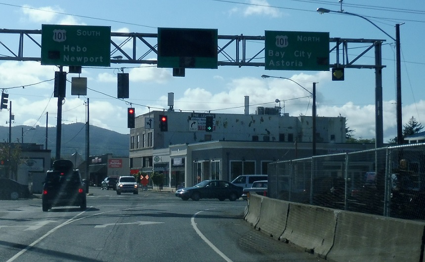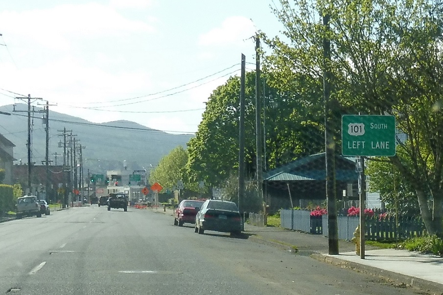 A couple miles later, we’ll enter Tillamook and its one way grid. Keep left to access US-101 south.