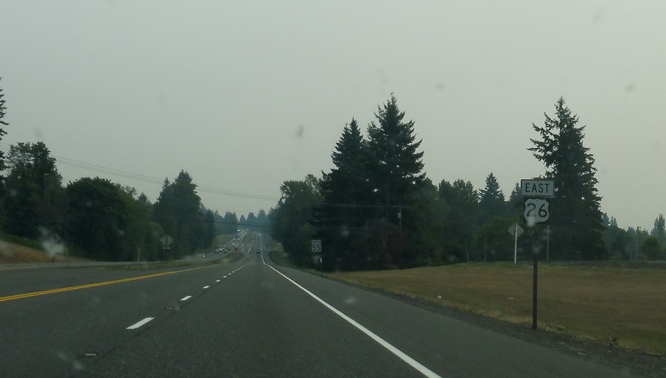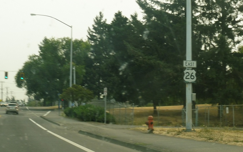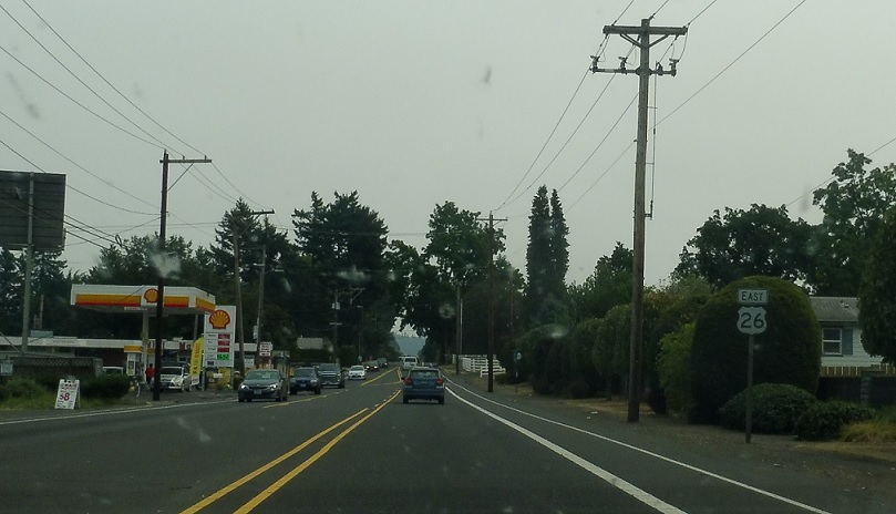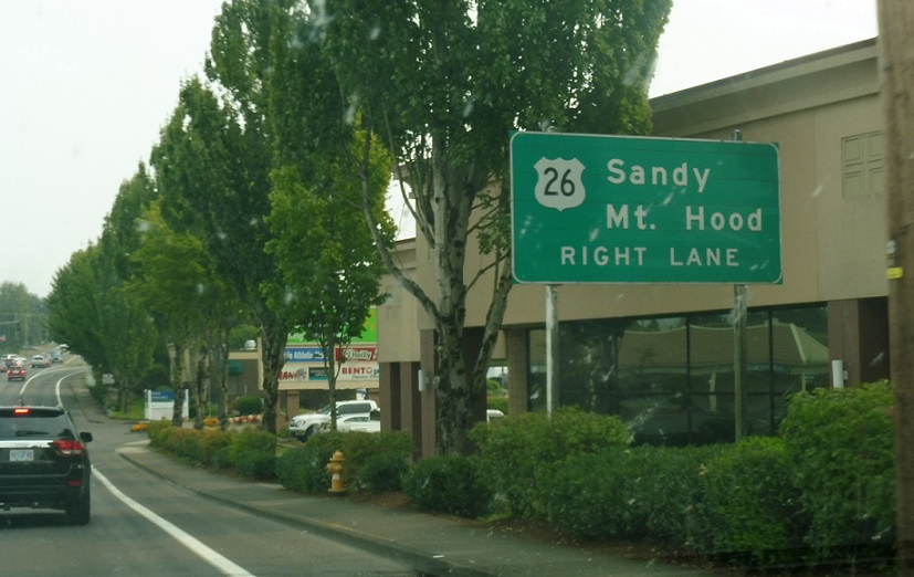 Just past Hogan Dr, US-26 will fork right to continue to Sandy.