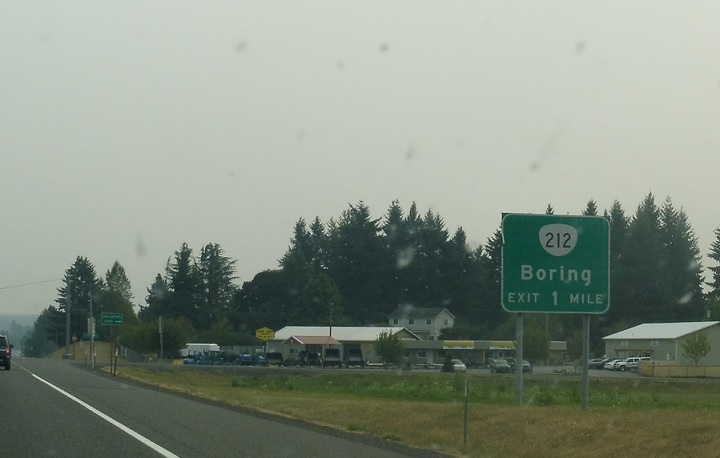Exit for OR 212, which heads west to Boring and back to Portland.
