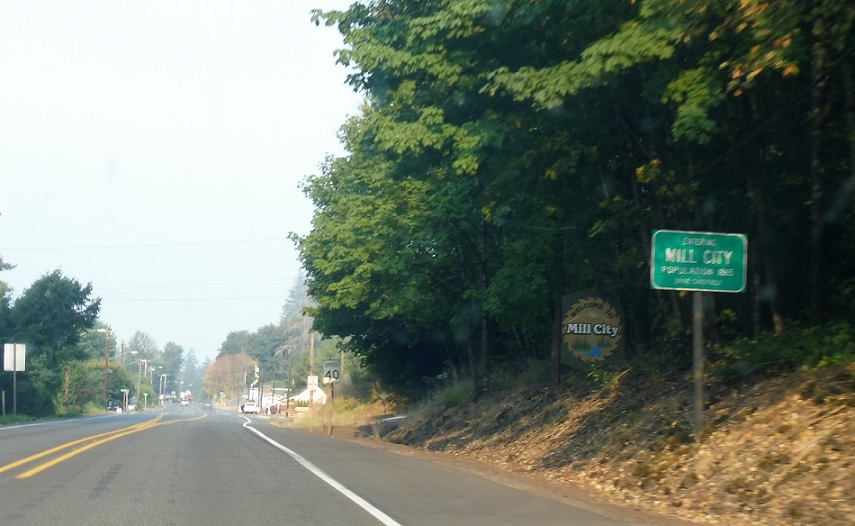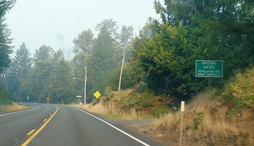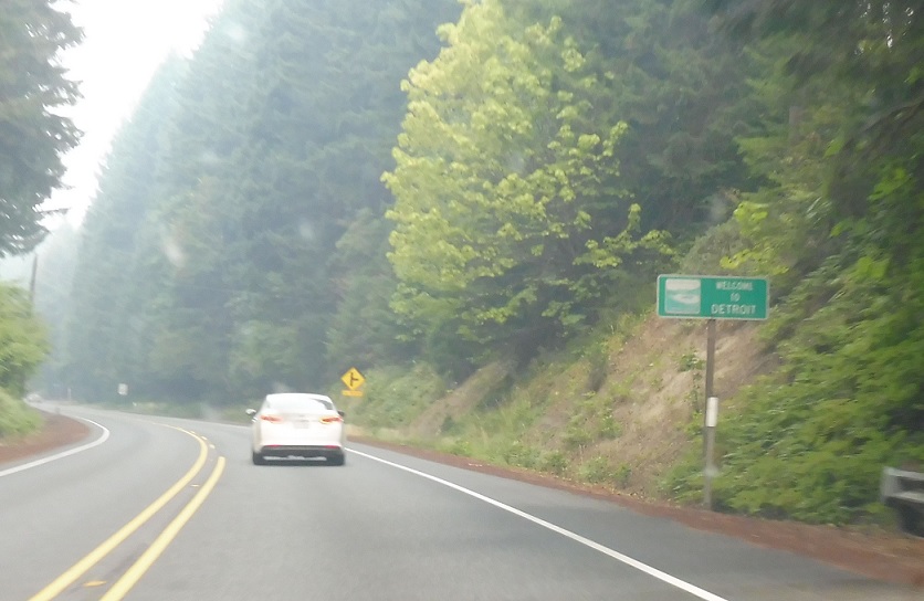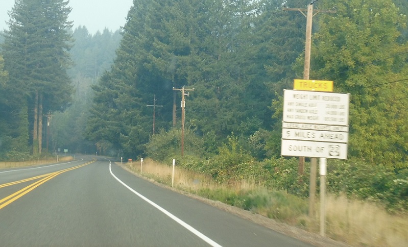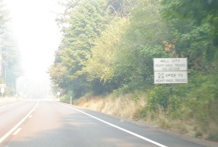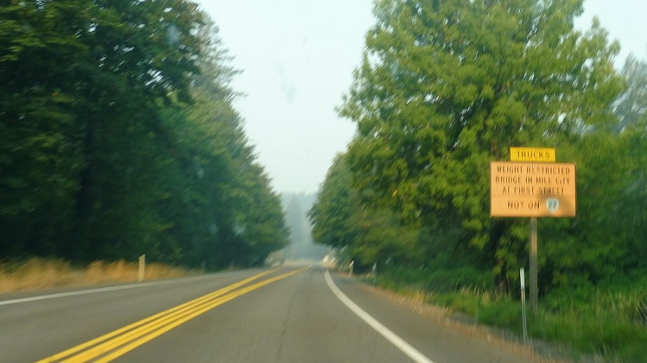 As we head out of Niagara, we’re advised that there is a weight restriction on a local road bridge in Mill City, not on OR 22 – the way this is worded is very confusing.