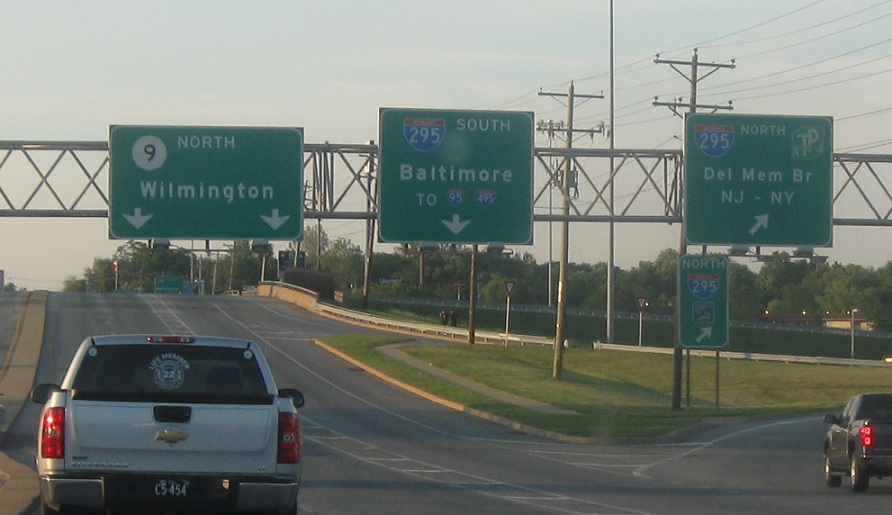 About half a mile later, we’ll approach I-295 and US-40. Exit right for I-295 north/US-40 east towards the Delaware Memorial Bridge and the New Jersey Turnpike.