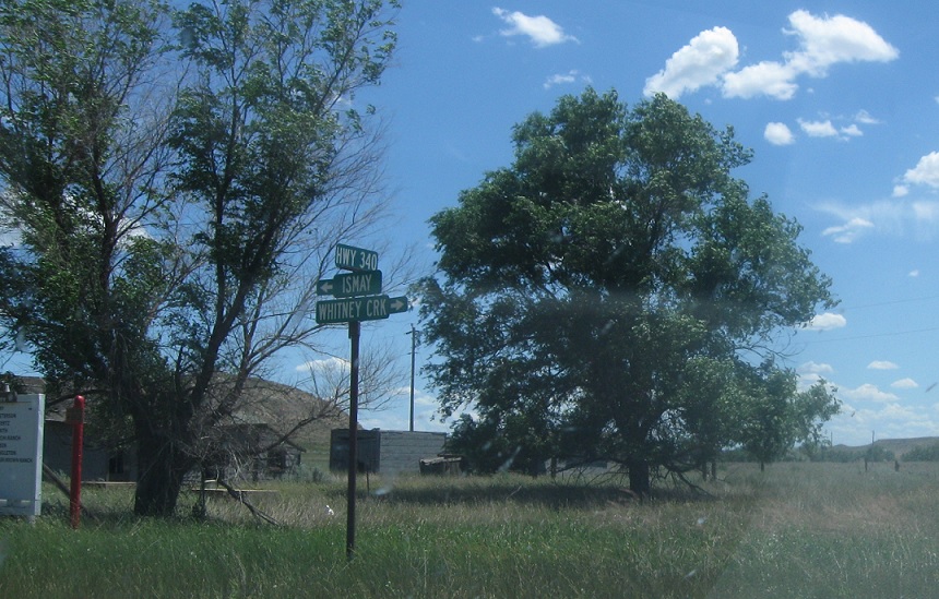 S-340 ends here. Turn left to follow a county road down to Ismay and right to follow Whitney Creek Rd.