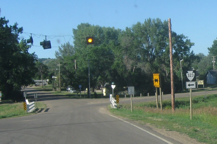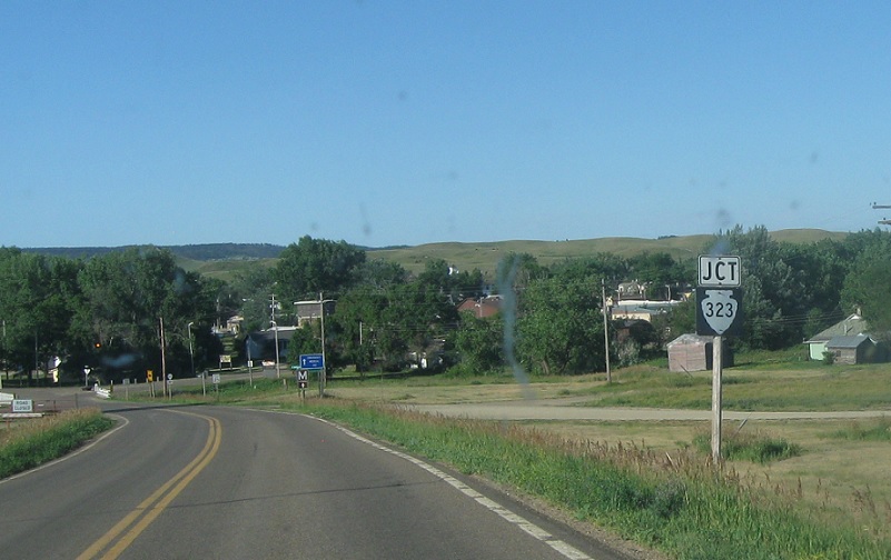 Turn left for 323 south. Montana 7 ends here. Stay straight to head into town.