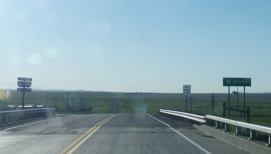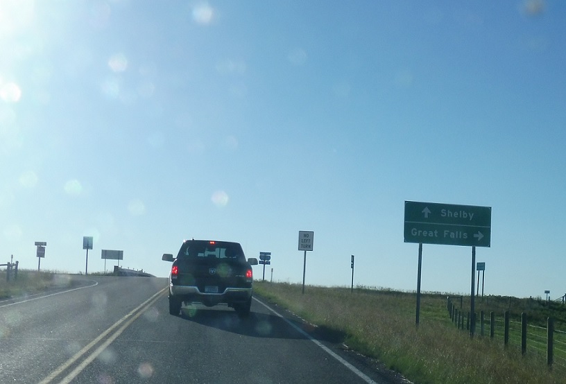 Follow I-15 south to Great Falls and I-15 north to Shelby.