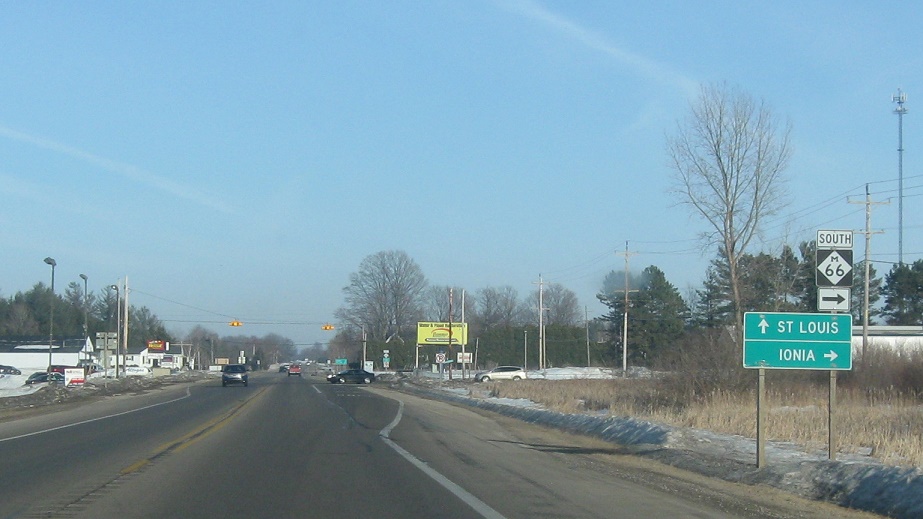 Stay on M-46 for St. Louis. Turn right for M-66 south to Ionia.