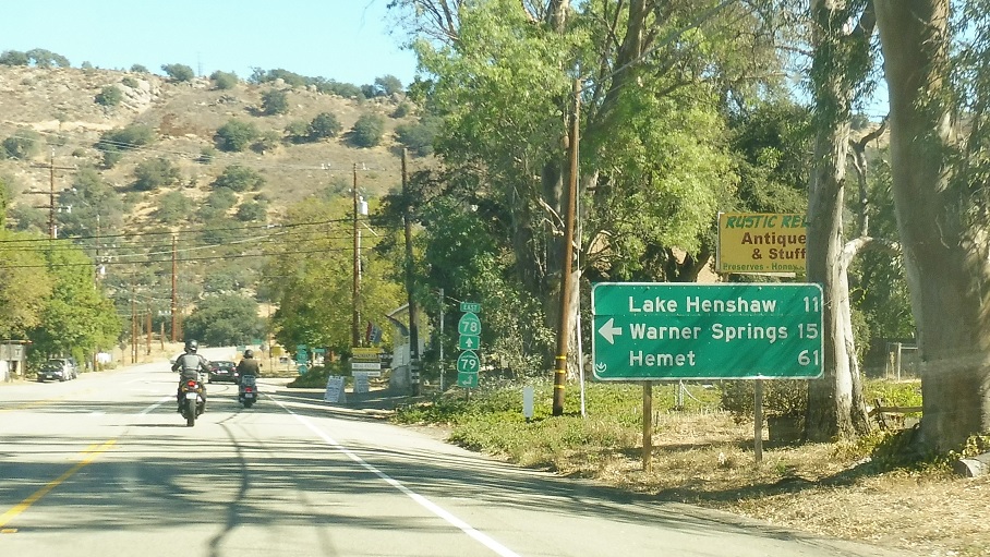 79 north heads to Lake Henshaw, Warner Spgs, and Hemet.