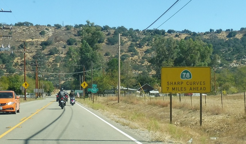 A couple miles later, we’ll approach SR 79. Continuing on 78 (and 79 south!) leads to some sharp curves.
