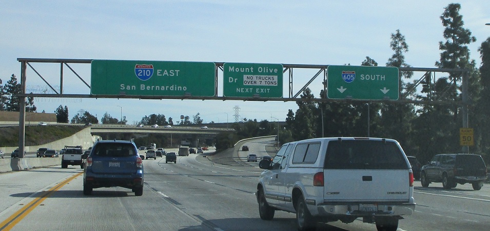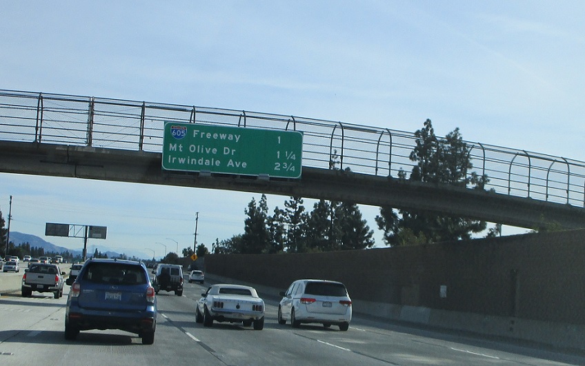 Exit for I-605 south. What’s left of 605 north connects to Mt Olive Drive at the next exit.