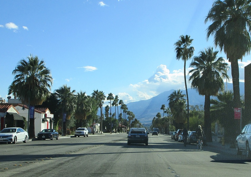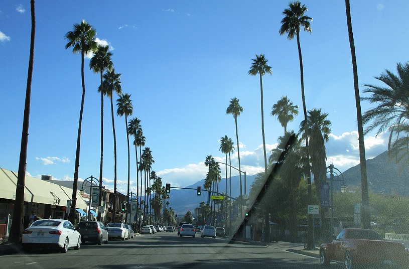 Downtown Palm Springs has giant palm trees.