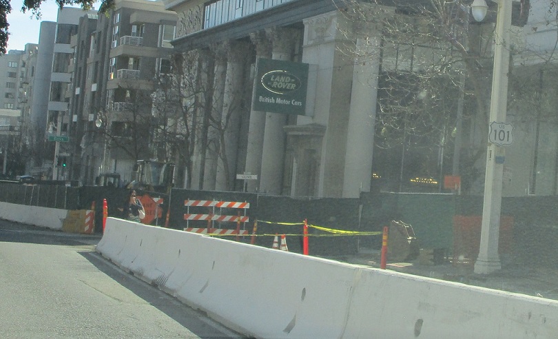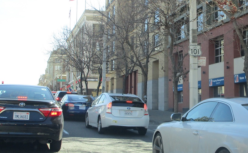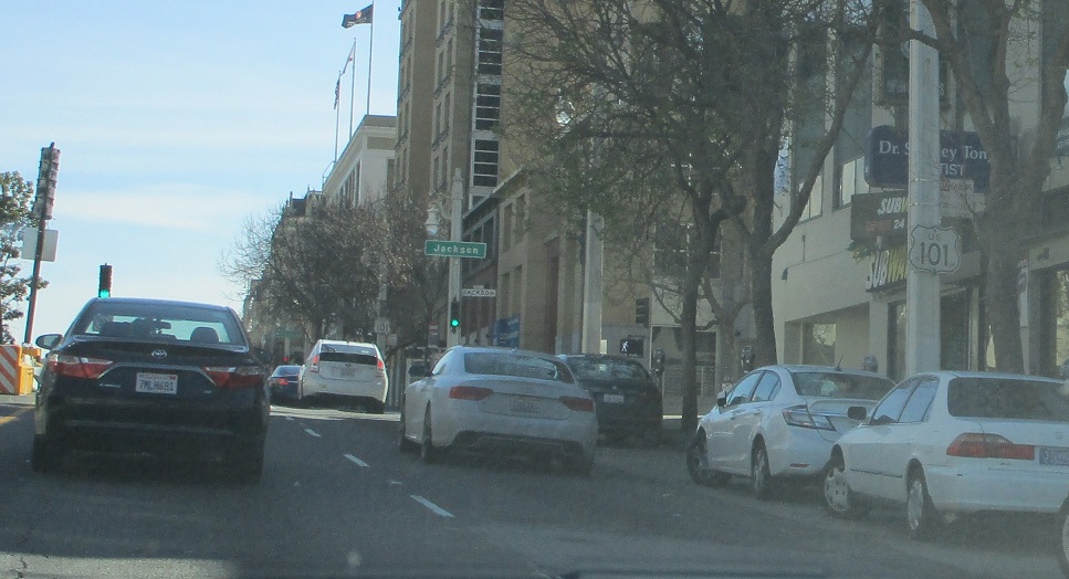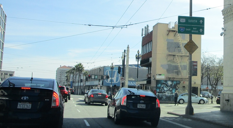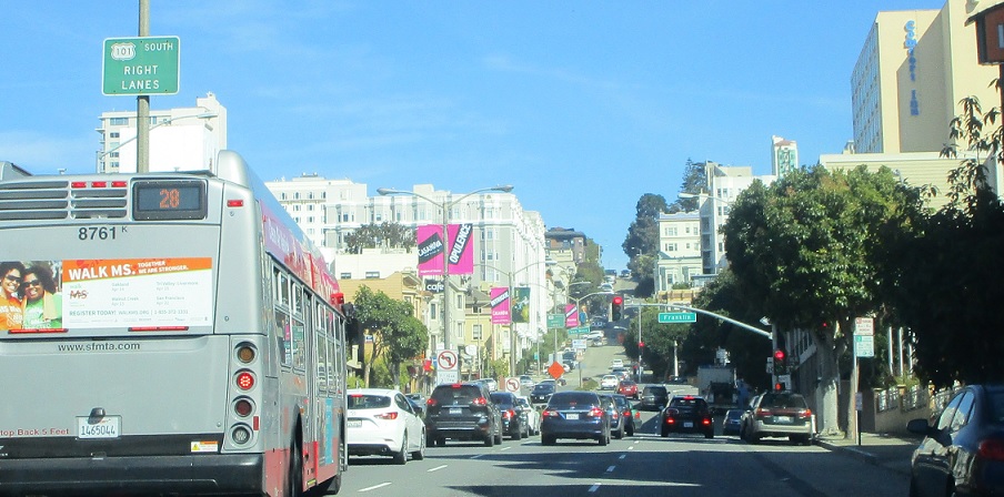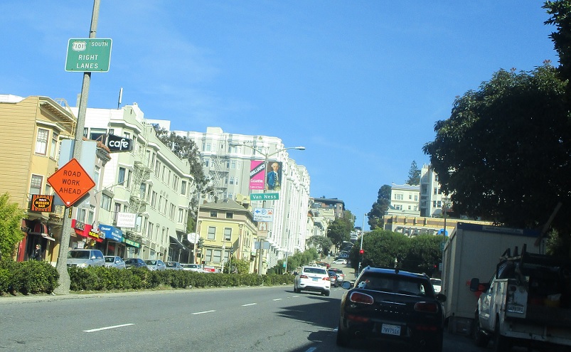 In a couple blocks, 101 turns south onto Van Ness, so it’s a good idea to start moving right.