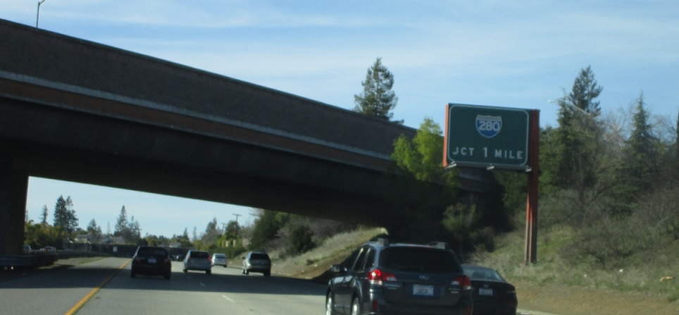 In one mile we’ll approach Interstate 280.