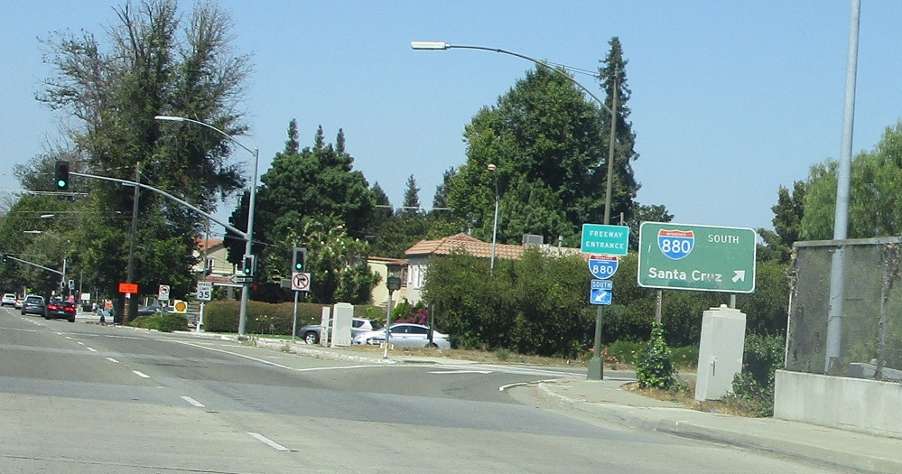 After the SR 87 access to SR 82, we’ll approach a turnoff to SR 87 via Cahill St. Stay on SR 82, which is still locally maintained, to connect to Interstate 880.