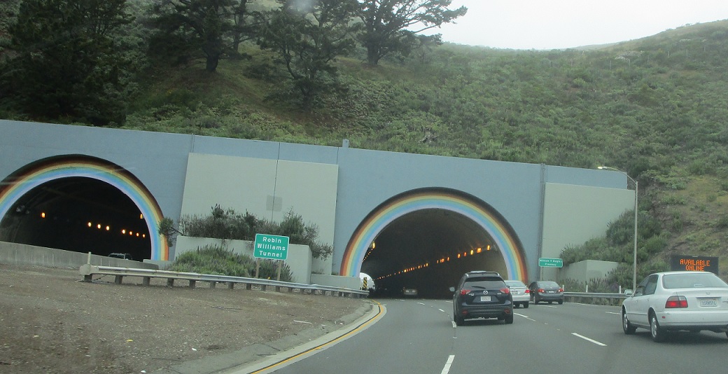 As we come off the Golden Gate Bridge, we’ll enter Marin County and pass through the Robin Williams Tunnel.
