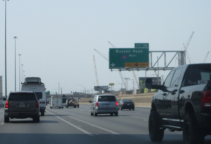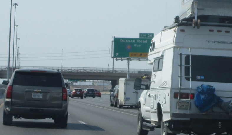 Exit ahead for CC 215 west and Russell Rd.