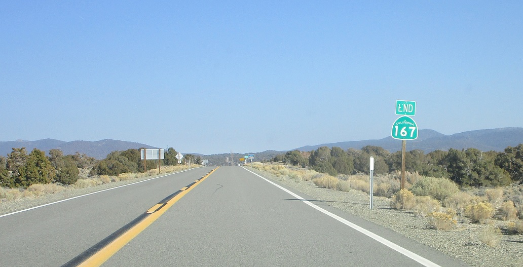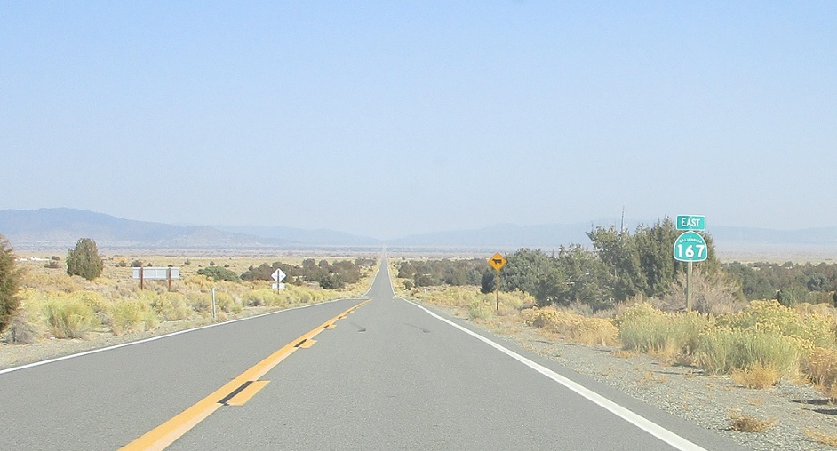 Reassurance shield after the turnoff to Bodie. SR 167 follows a completely straight line from here all the way to Nevada.