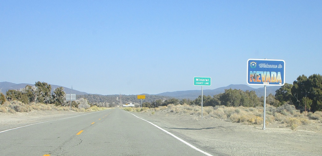 Welcome to Nevada! The road continues as Nevada SR 359, which heads into Hawthorne.
