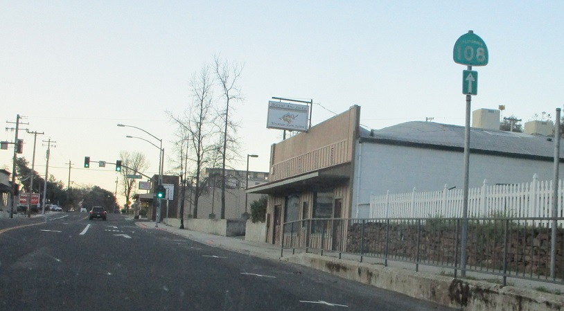 Of course, a block later SR 108 Business makes an unsigned left turn.
