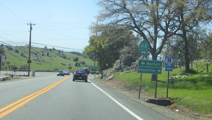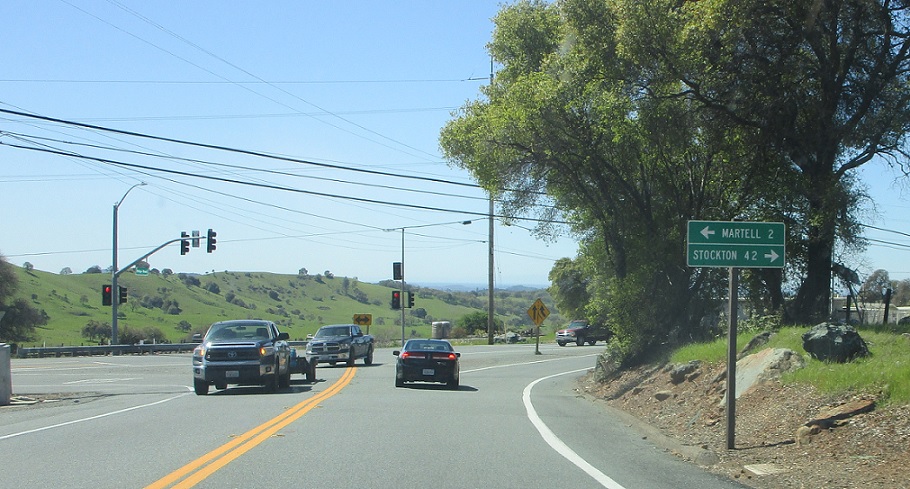About a mile later we’ll approach SR 88, which heads west back to where we were and east to Stockton with SR 104.