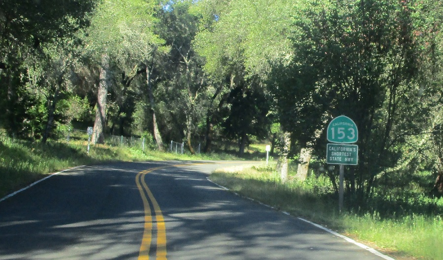 After the turn we’re advised that SR 153 is California’s shortest state highway, which is not accurate – SR 77 is shorter. SR 153 ends just ahead.