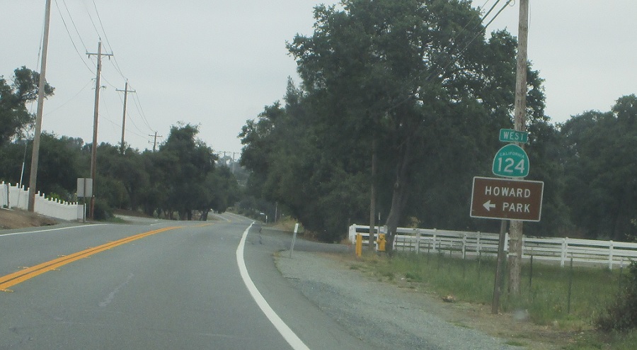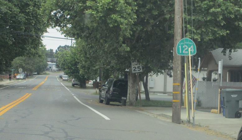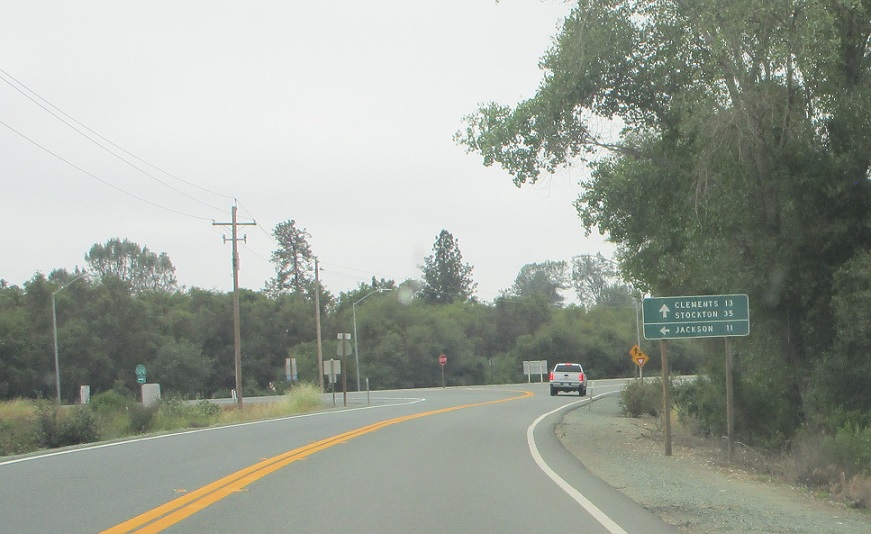 Shortly thereafter, we’ll come to an unmarked junction with SR 88. Turn left for 88 east to Jackson. Stay straight/turn right for 88 west to Clements and Stockton. SR 124 ends.