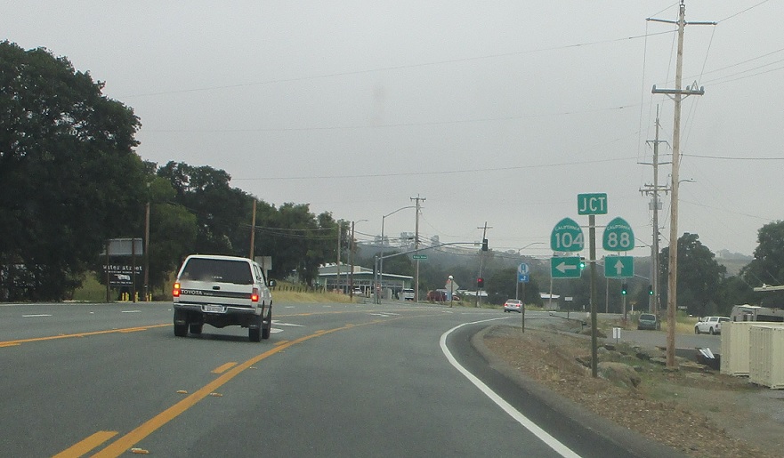 A few miles later, SR 104 will split to continue east on Ridge Rd. Stay on 88 for Jackson.
