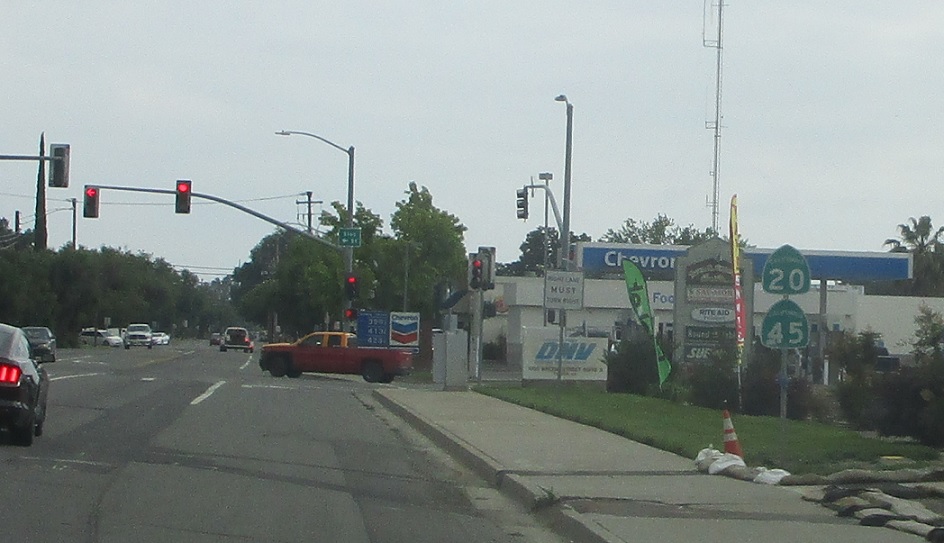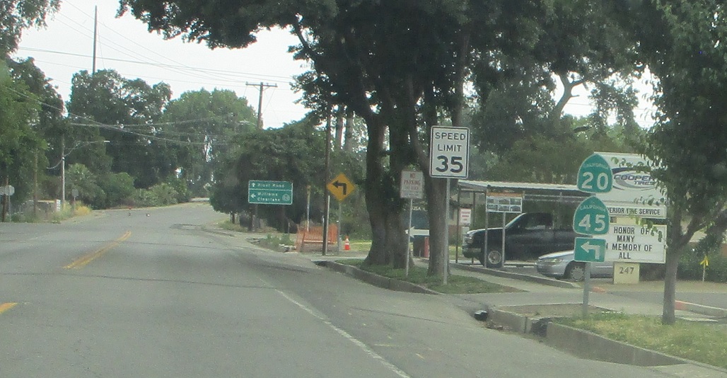 Reassurance shield as we pass through downtown Colusa. At least SR 45 gets a “to” this time, even though this is actually SR 45.