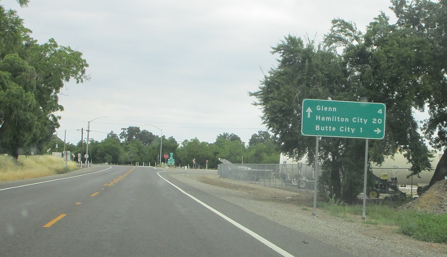 Stay straight for 45 north/162 west towards Glenn and Hamilton City. Follow 162 east to Butte City. 45 and 162 run concurrent for about three miles.