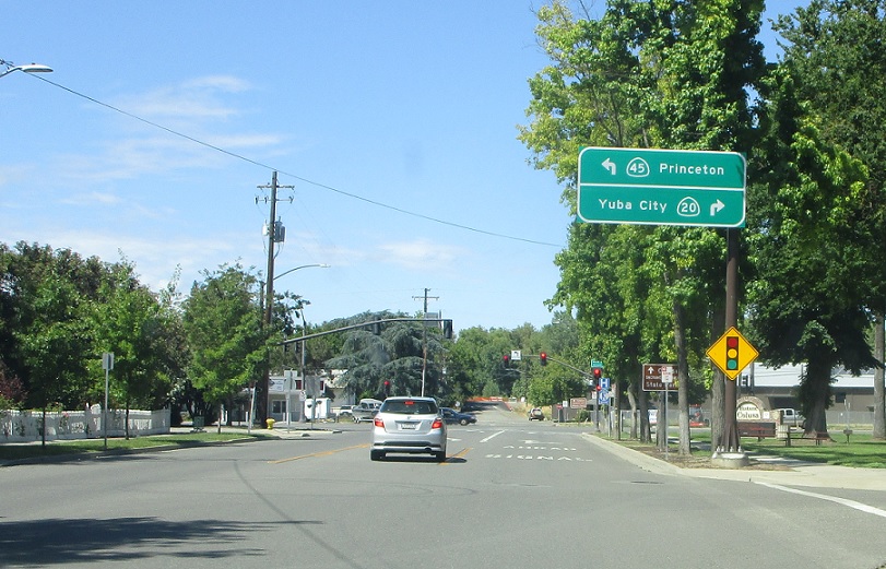 A few blocks later, we’ll approach SR 45. Turn left for 45 north to Princeton. Turn right for 20 east and 45 south towards Yuba City.