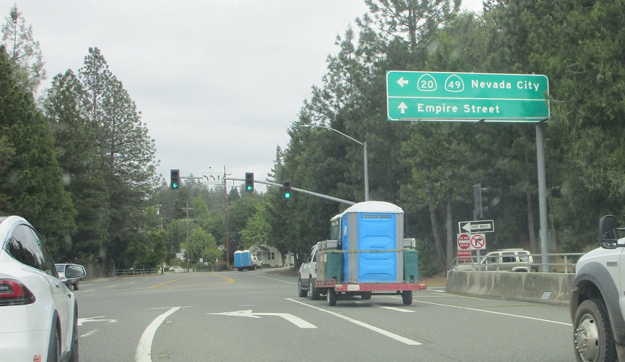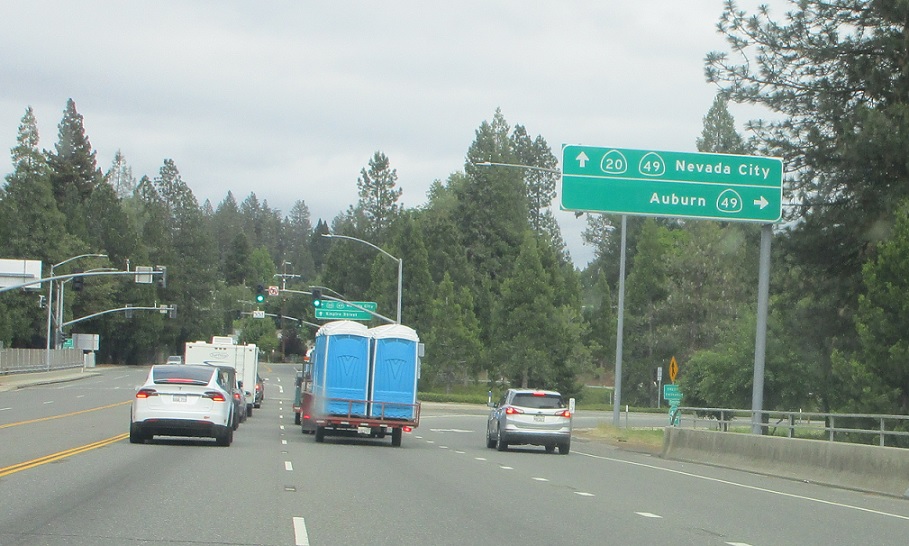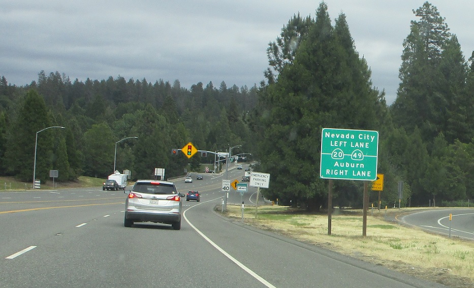 Up ahead we’ll approach SR 49. SR 20 east joins SR 49 north on the freeway through Grass Valley and Nevada City.